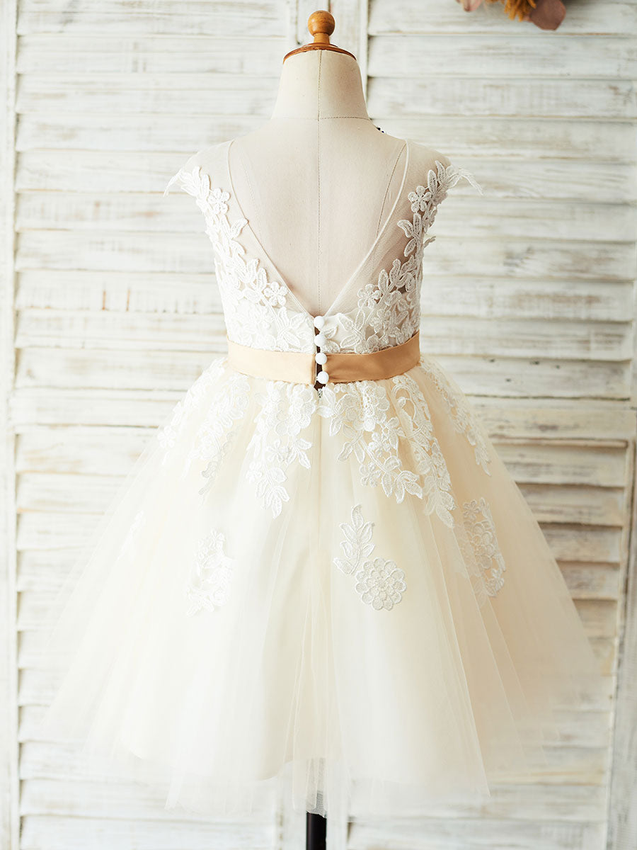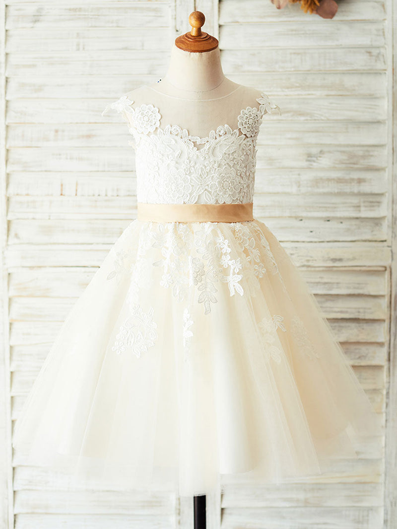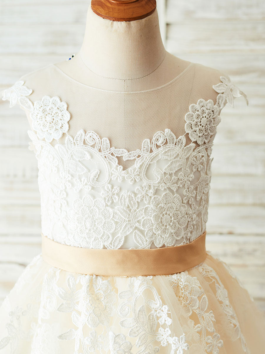 Amazing Jewel Neck Sleeveless Sash Kids Party Dresses