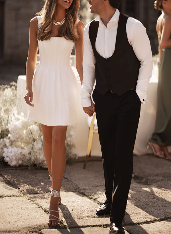 Chic A-line Square Neckline Sleeveless Short Satin Wedding Dresses