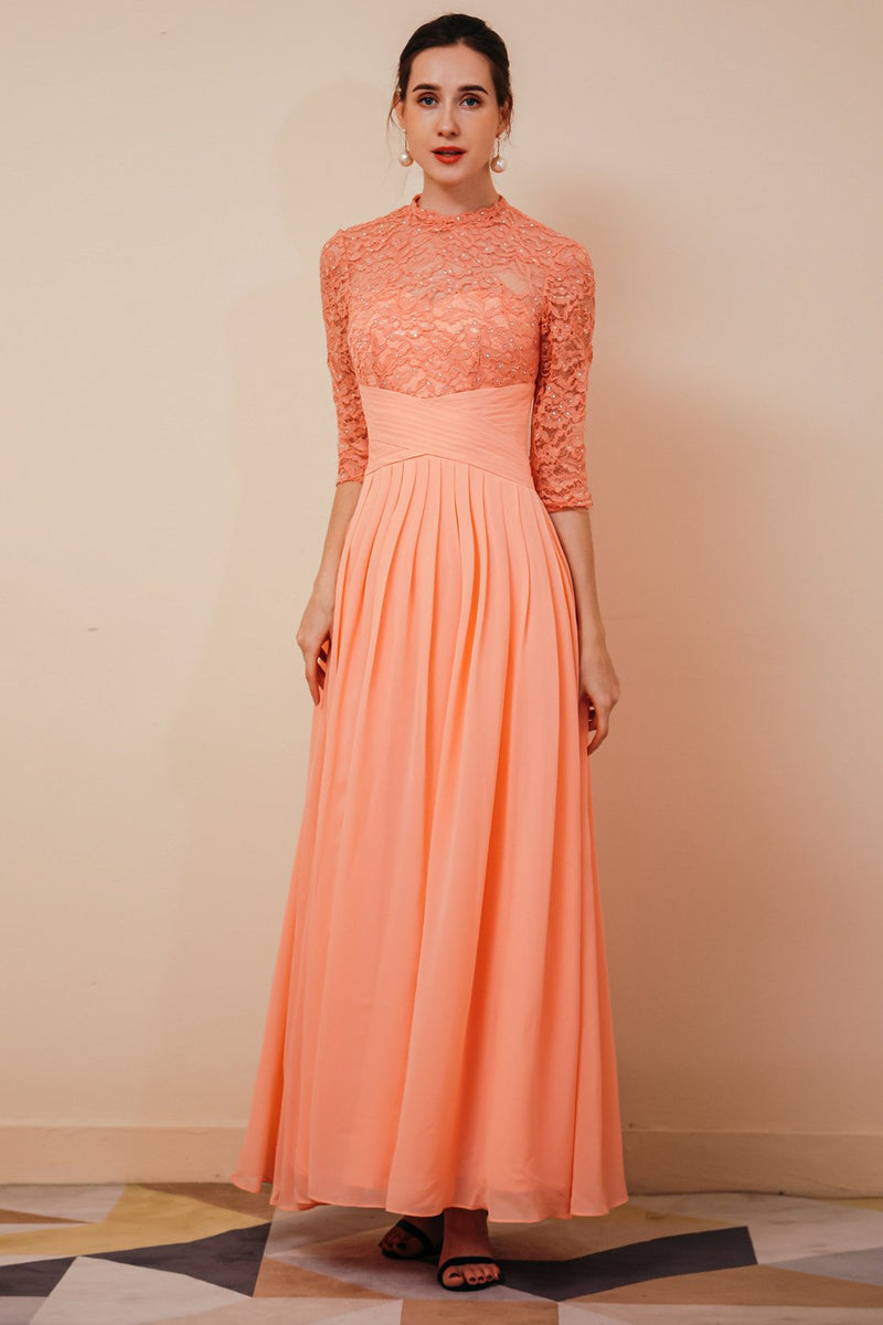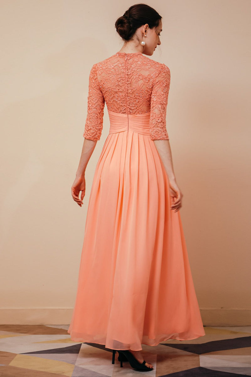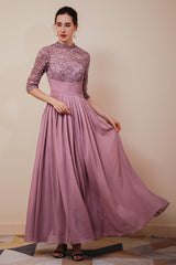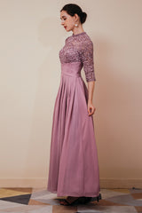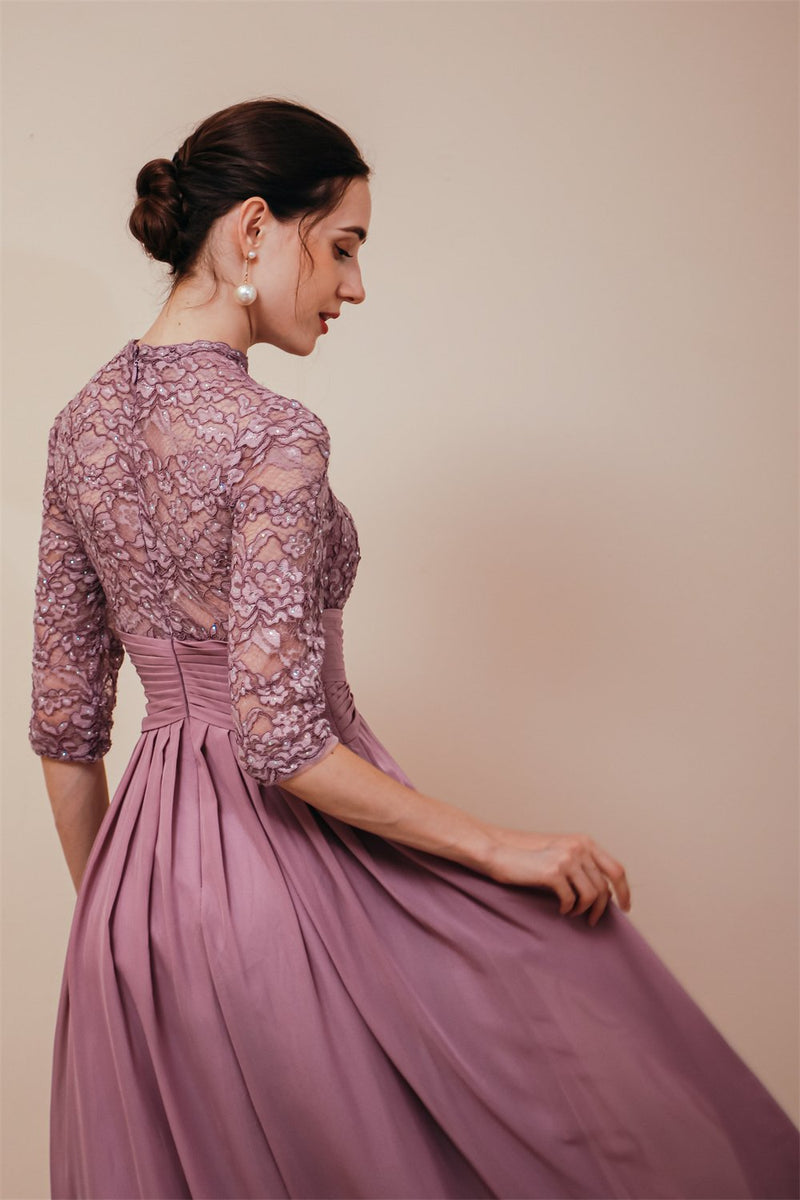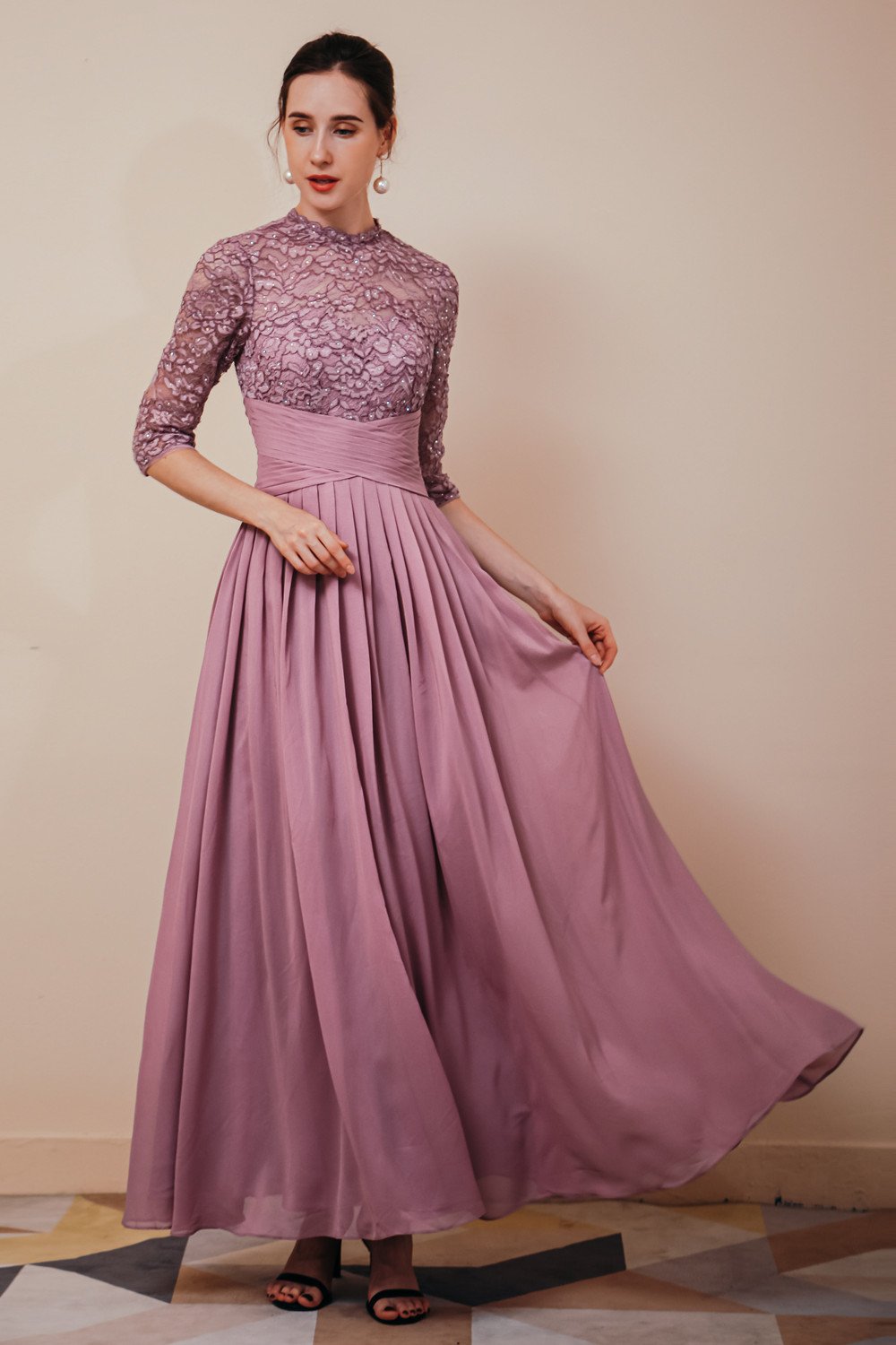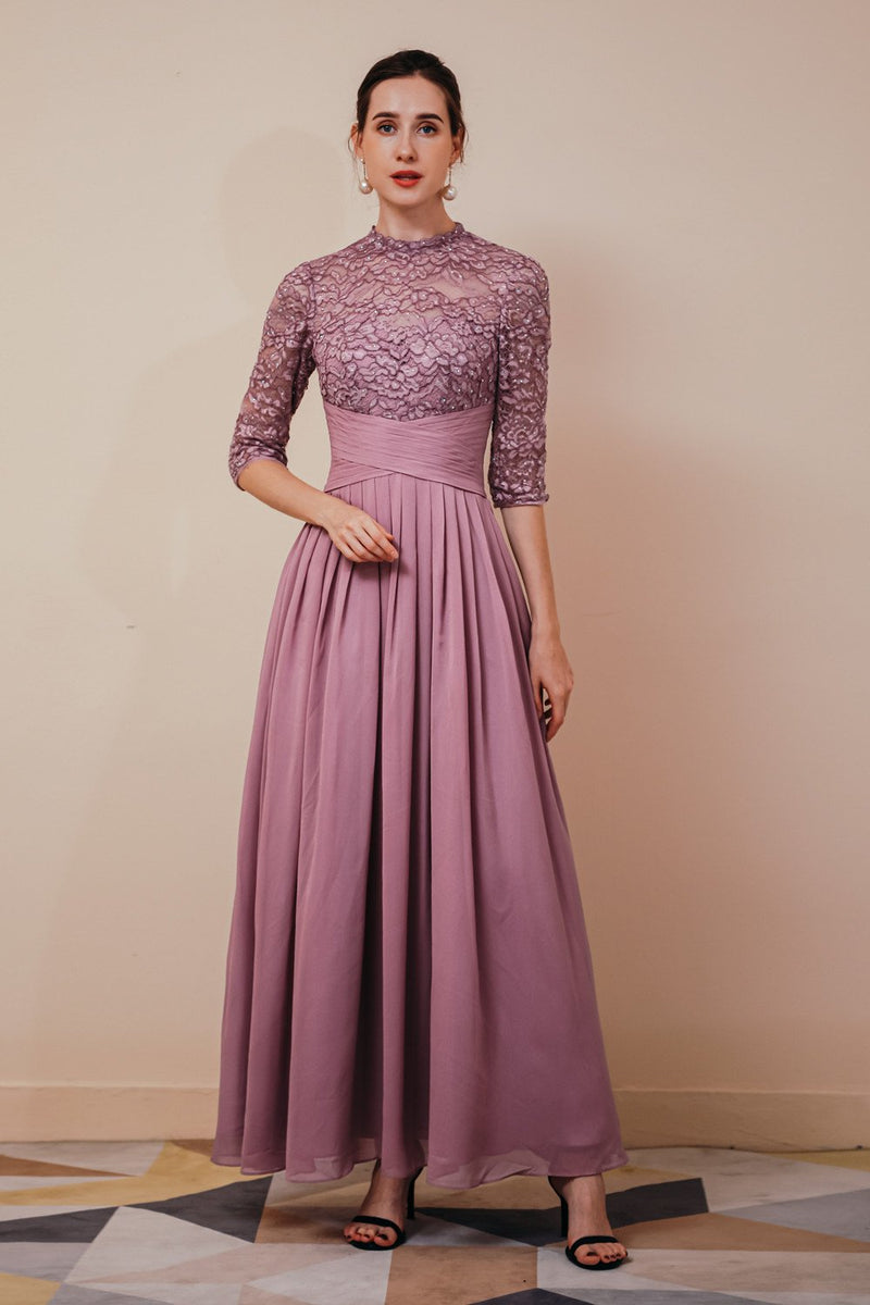 Chic Violet 3/4 sleeves High waist Beadings Lace Chiffon Evening Party Gowns