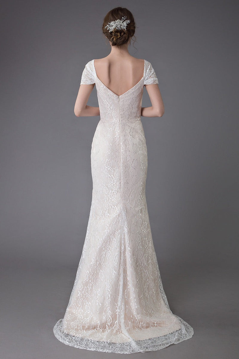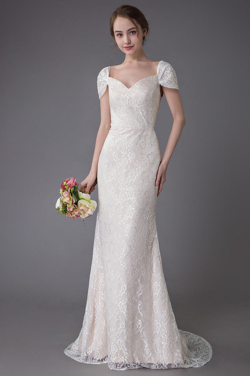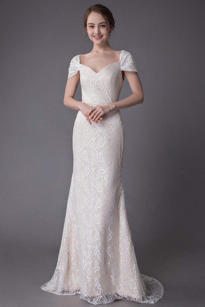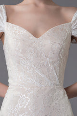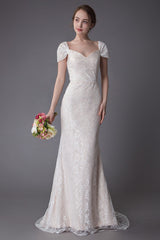 Lace Wedding Dress Vanilla Cream Sweetheart Short Sleeve Bridal Dress Mermaid Bridal Gown With Train Exclusive