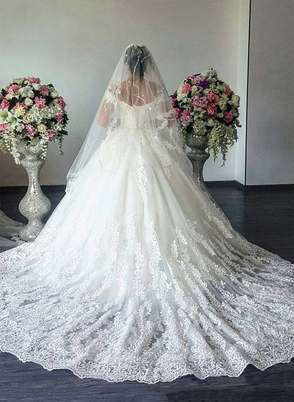 Off-The-Shoulder Tulle Court Train Wedding Dress Appliques Lace