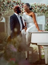 One-Shoulder Sleeveless Floor-Length Satin Wedding Dresses