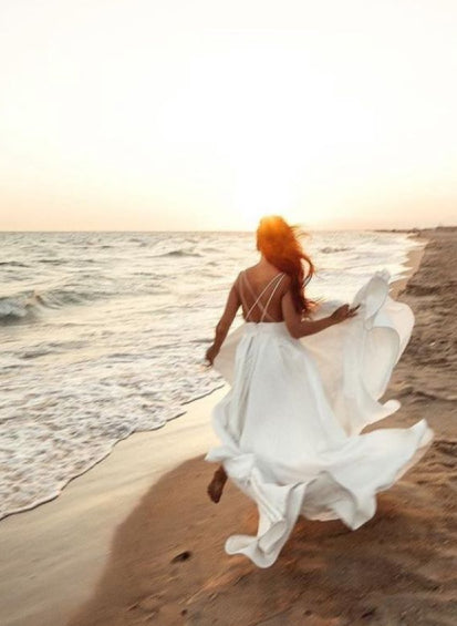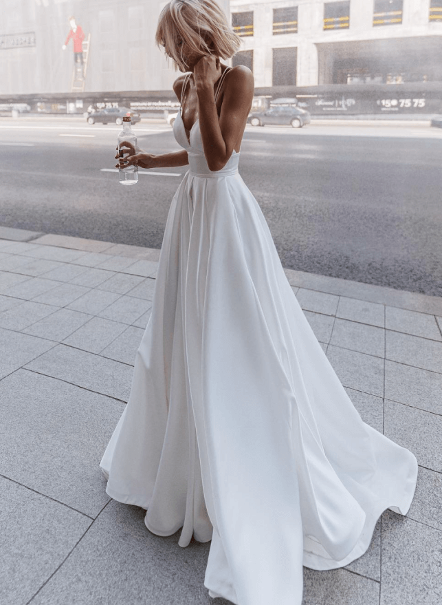 V-Neck Open Back Spaghetti Straps Chic A-line Wedding Dresses