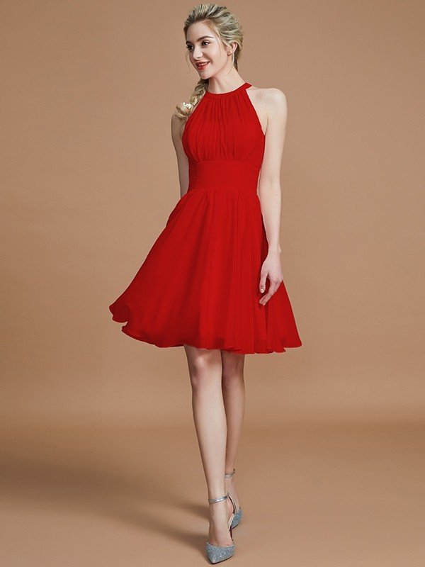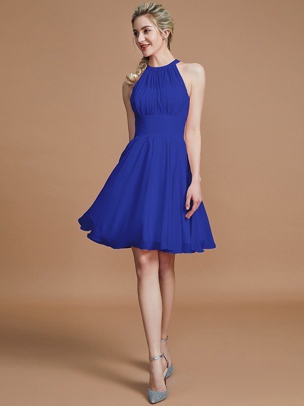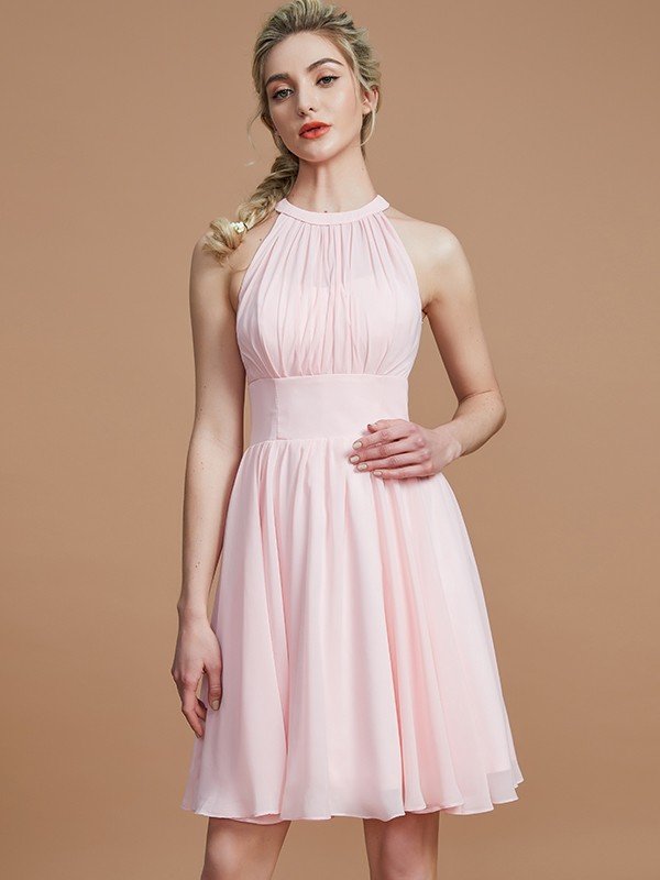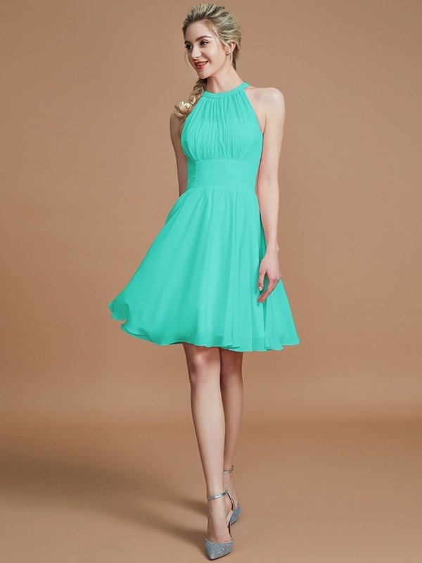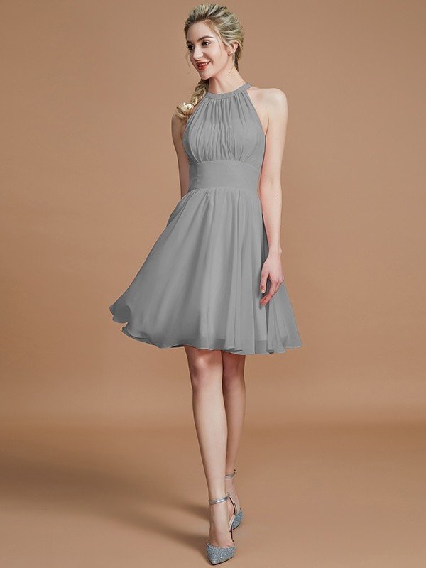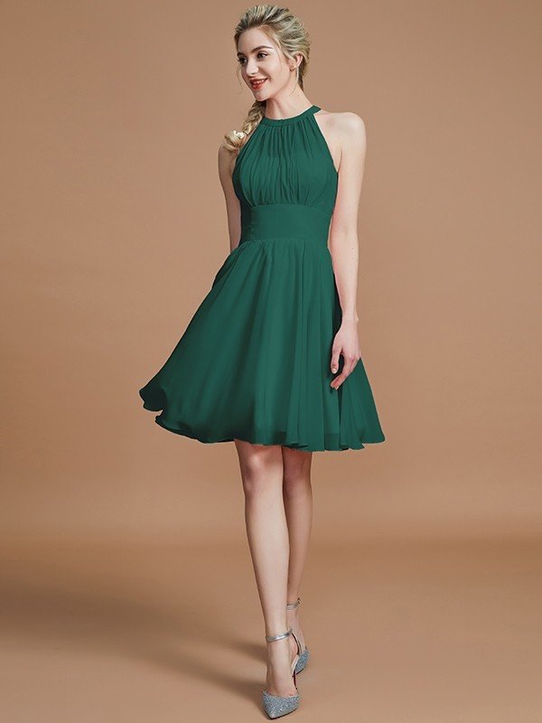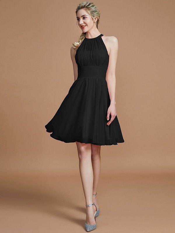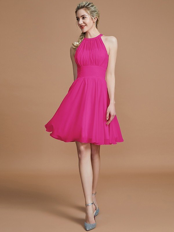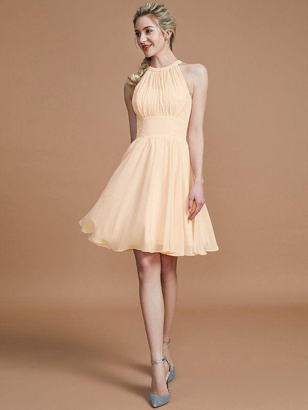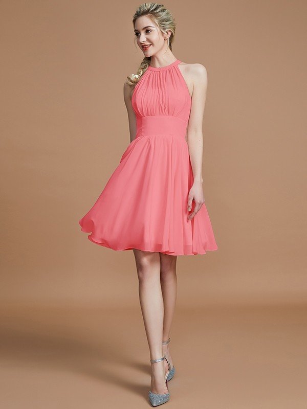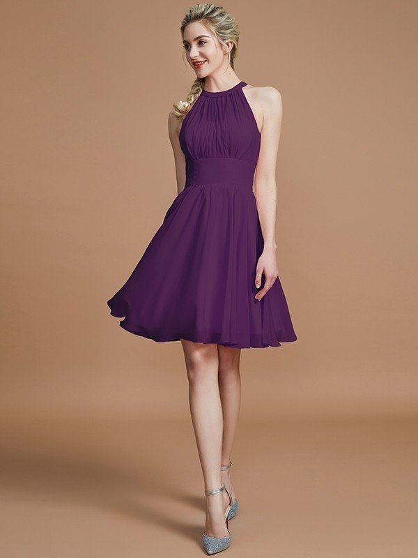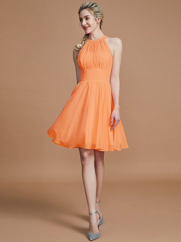 Modern Chiffon Knee-Length Sleeveless Scoop Bridesmaid Dresses