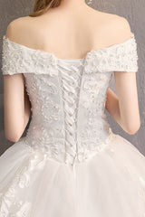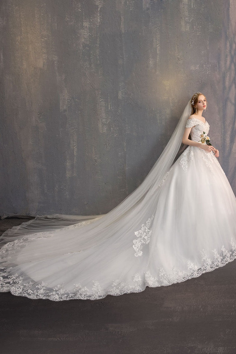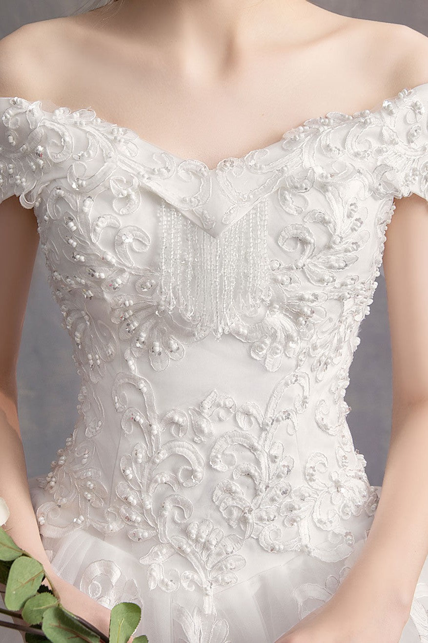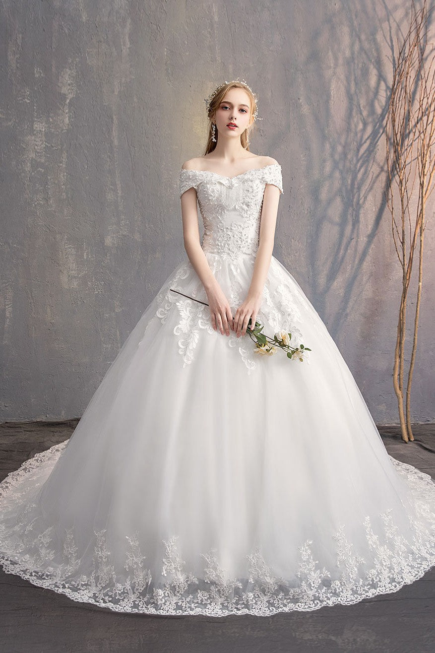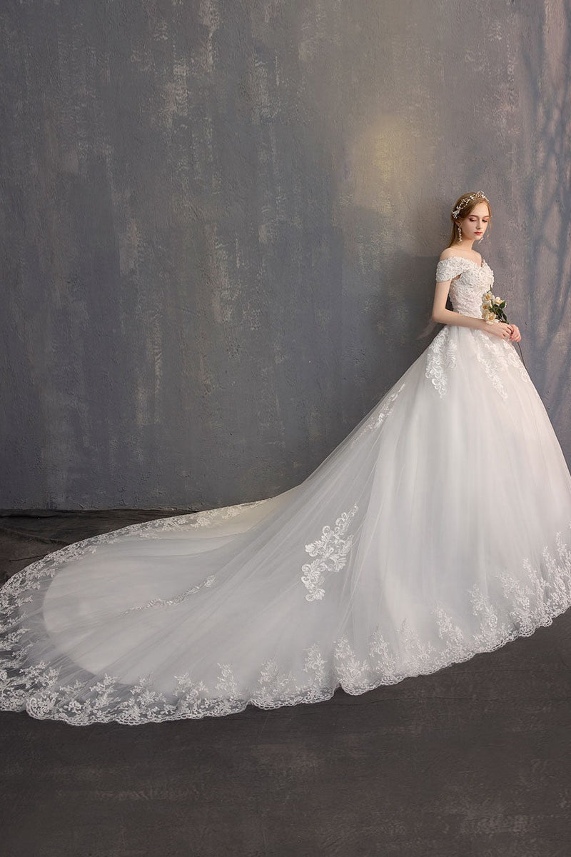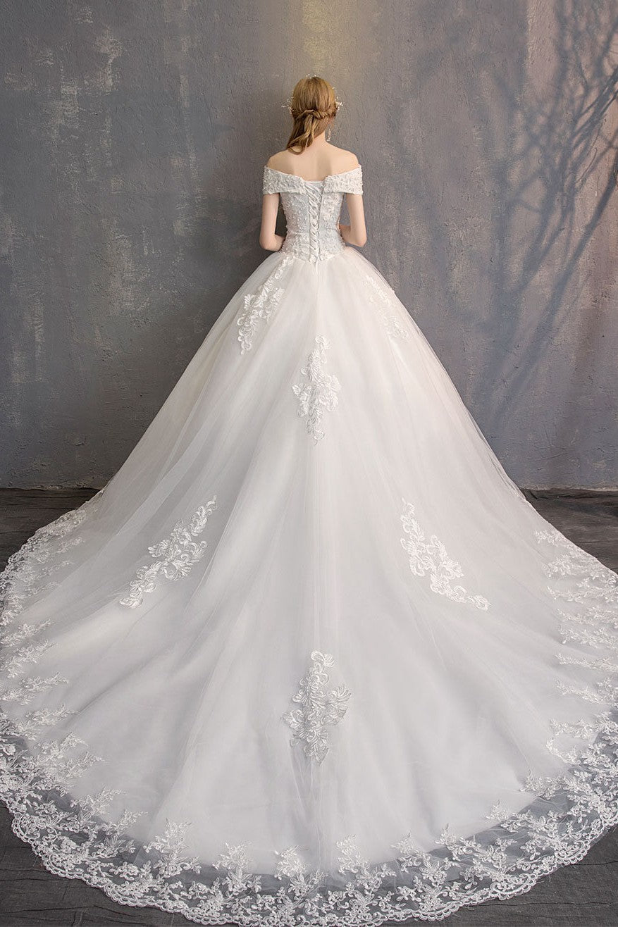 Ball Gown Princess Wedding Dresses Ivory Lace Beaded Chains Off The Shoulder Bridal Dress