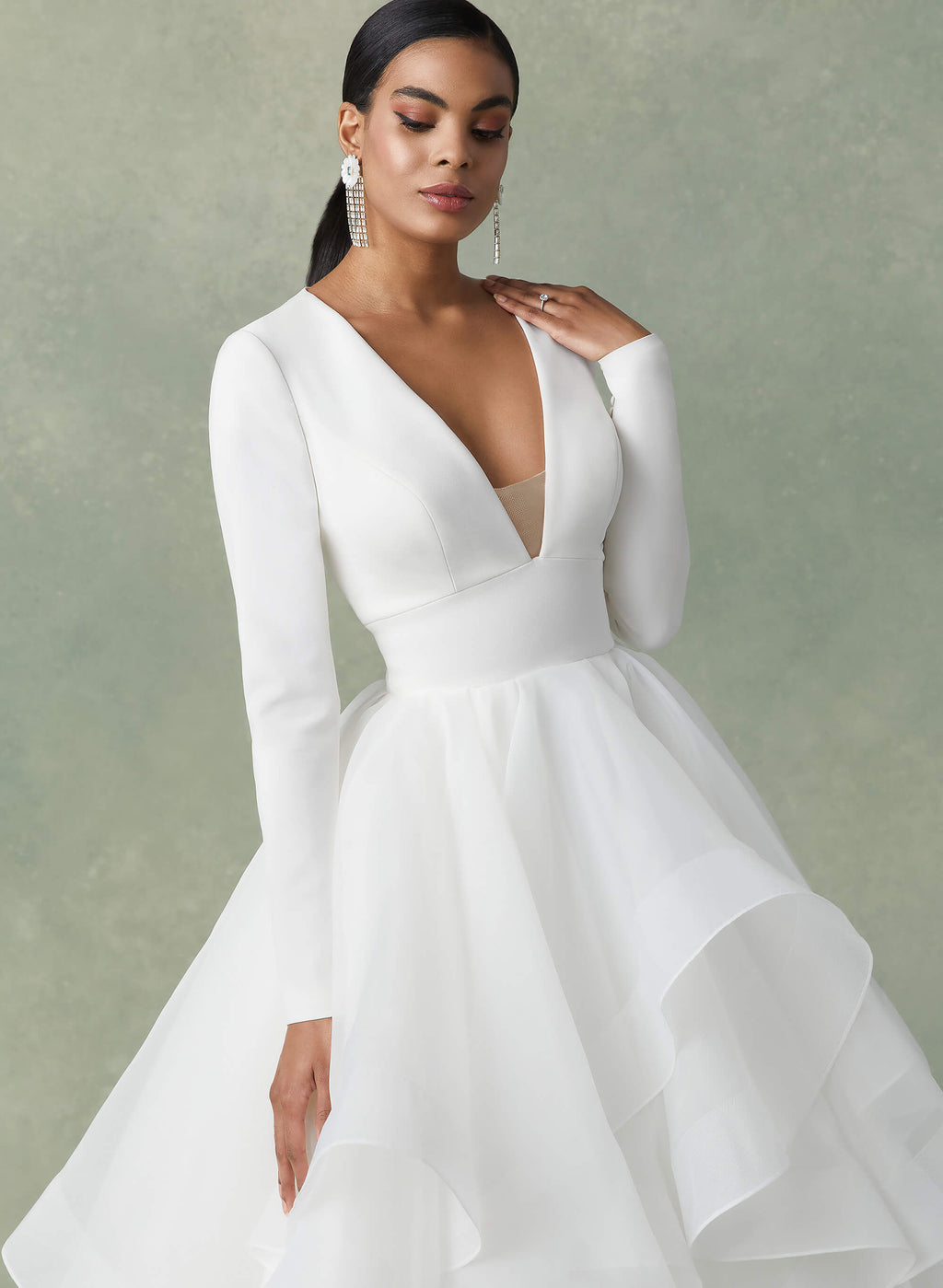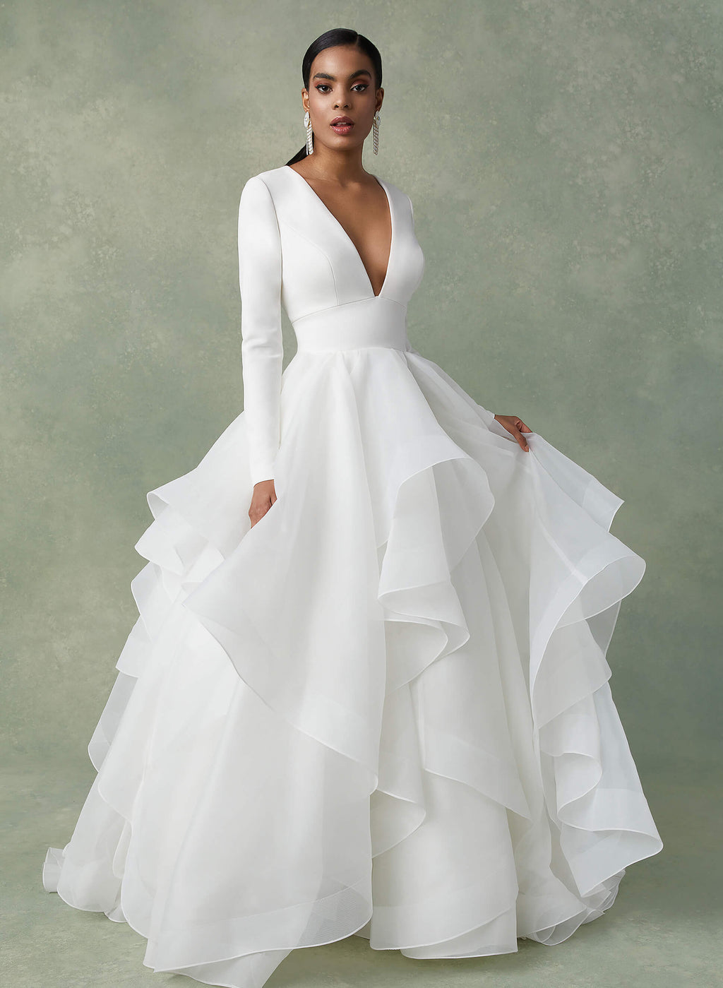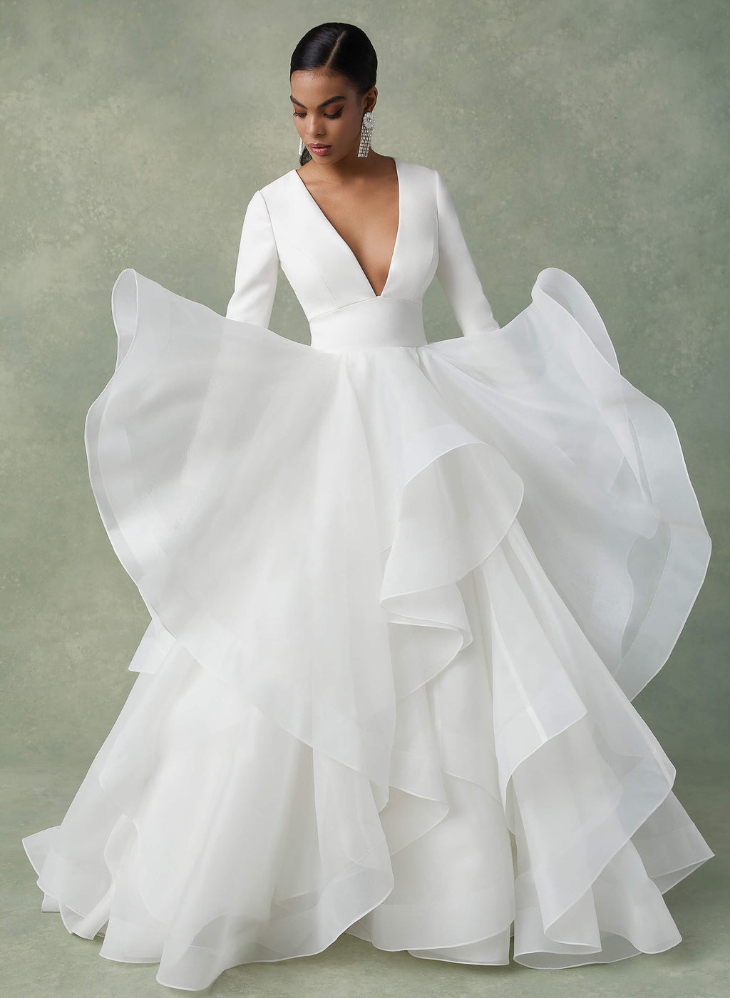 Ball-Gown Wedding Dresses Cascading Ruffles Long Sleeves
