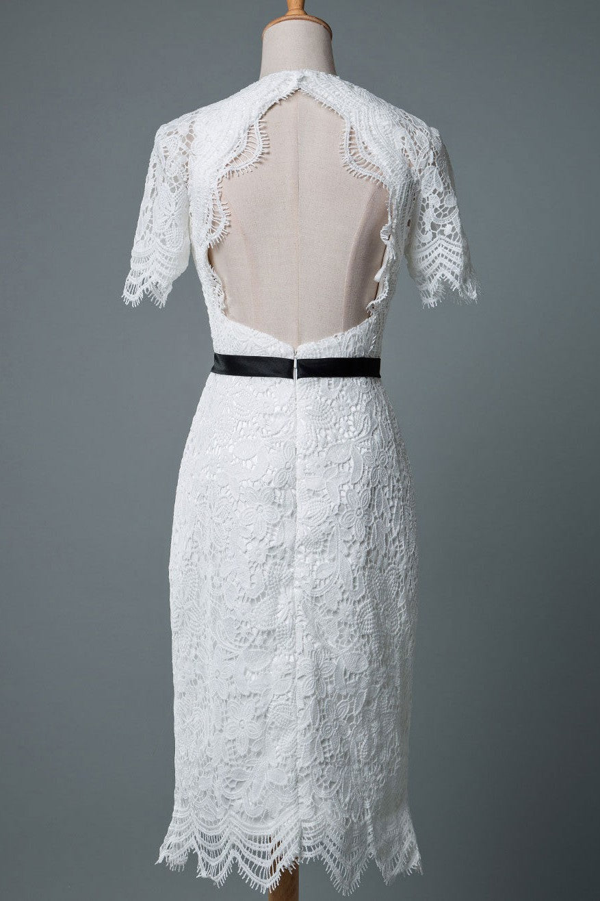 Casual Wedding Dresses Chic V-Neck Short Sleeves Column Knee Length Retro Bridal Gowns Exclusive