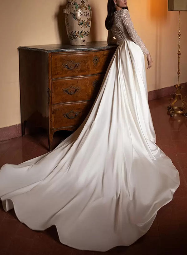 Detachable Train V-Neck Long Sleeves Sweep Train Wedding Dresses