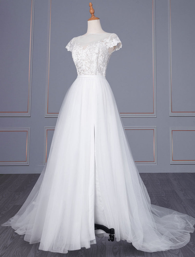 Elegant Wedding Dresses Lace Off The Shoulder Short Sleeves Lace A Line Bridal Dresses