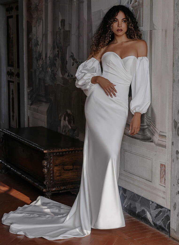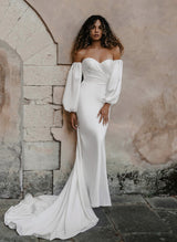 Elegant Sweetheart Long Sleeves Trumpet Mermaid Fitted Wedding Dresses
