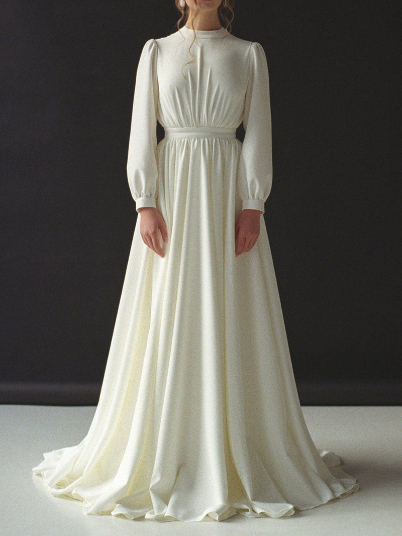 Gorgeous Wedding Dresses With Train Jewel Neck Long Sleeves Backless A-Line Bridal Gown