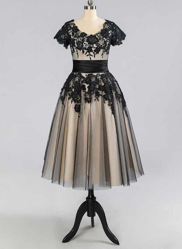 Illusion Neck Short Sleeves Lace Wedding Dresses Appliques Lace