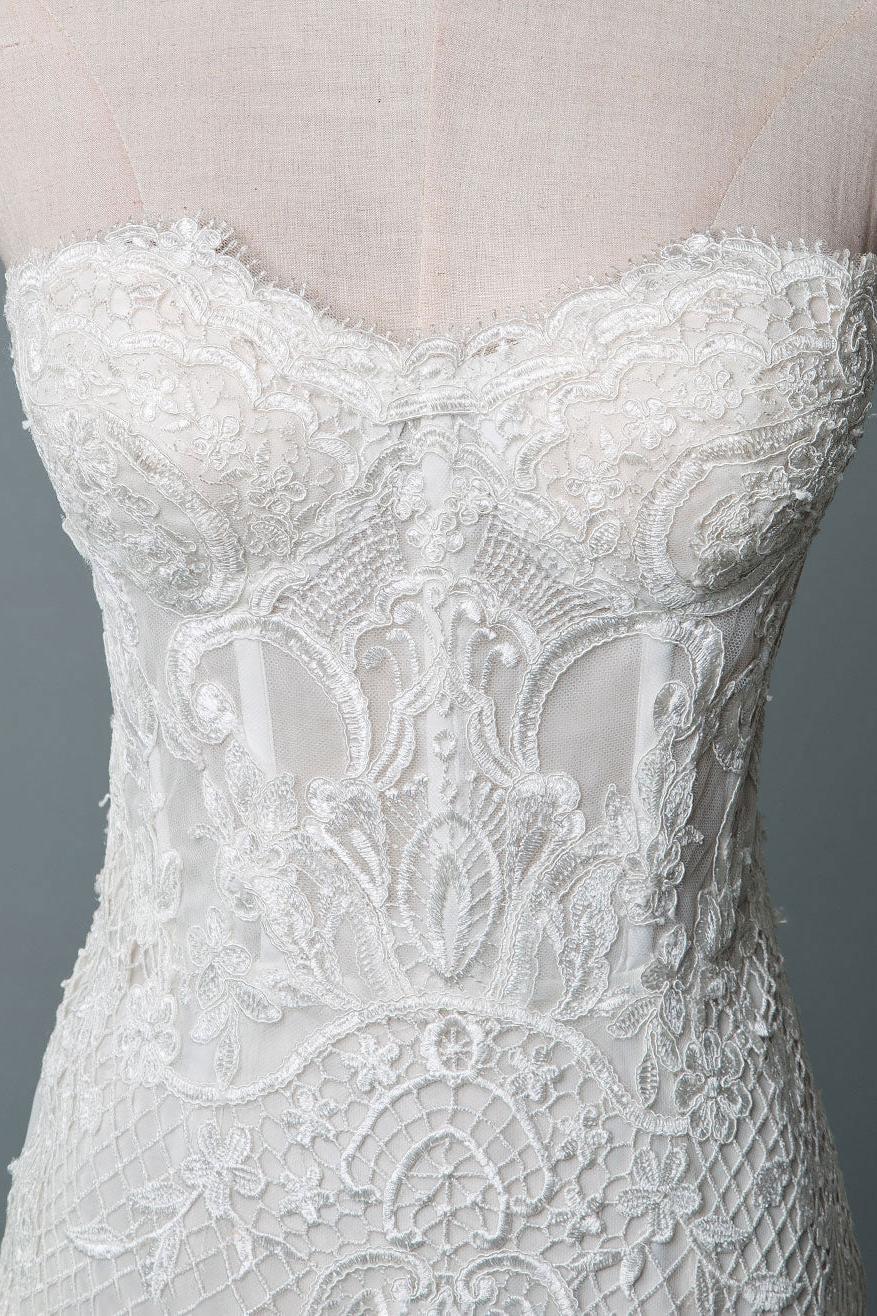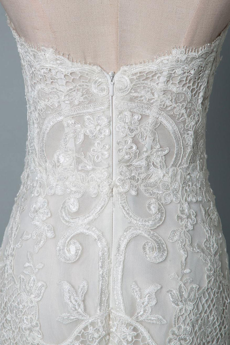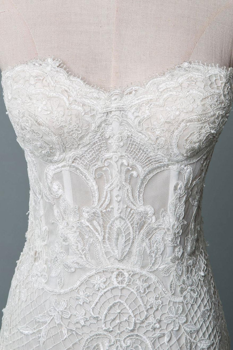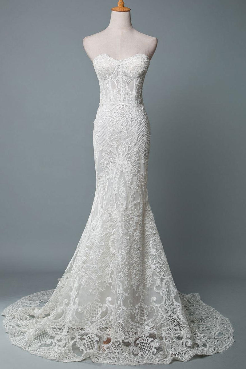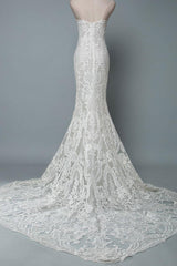Lace Wedding Dress Mermaid Sweetheart Strapless Sleeveless Long With Train Bridal Gowns
