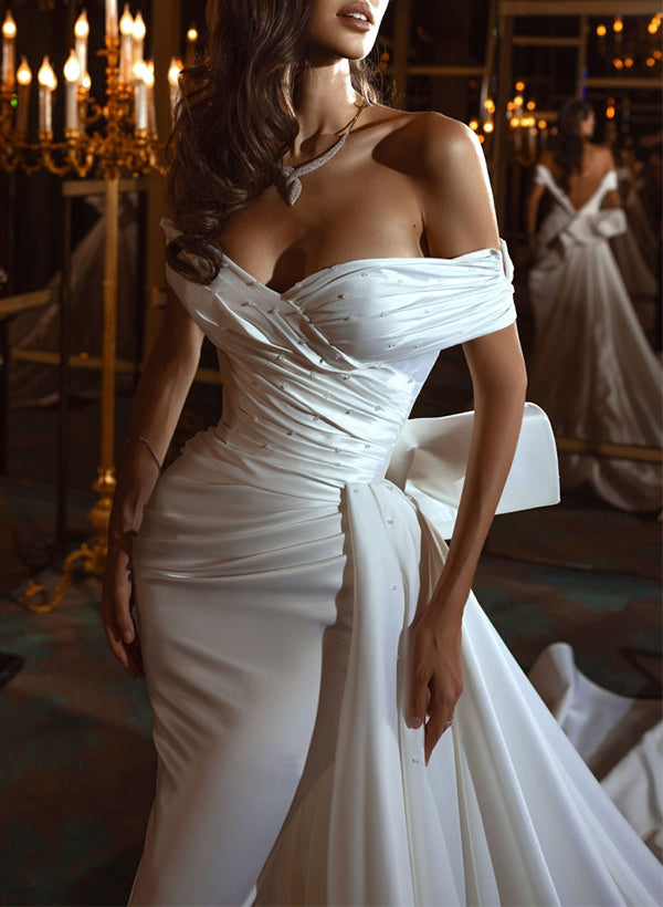 Off-The-Shoulder Sleeveless Court Train Wedding Dresses Beaded