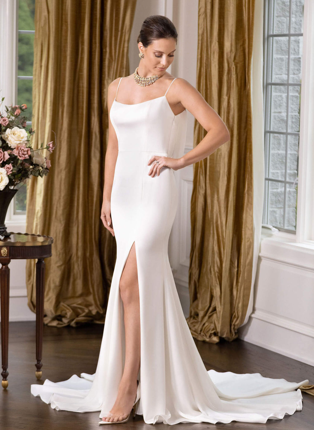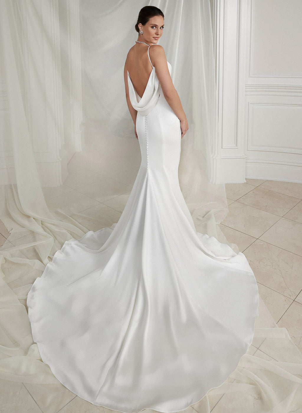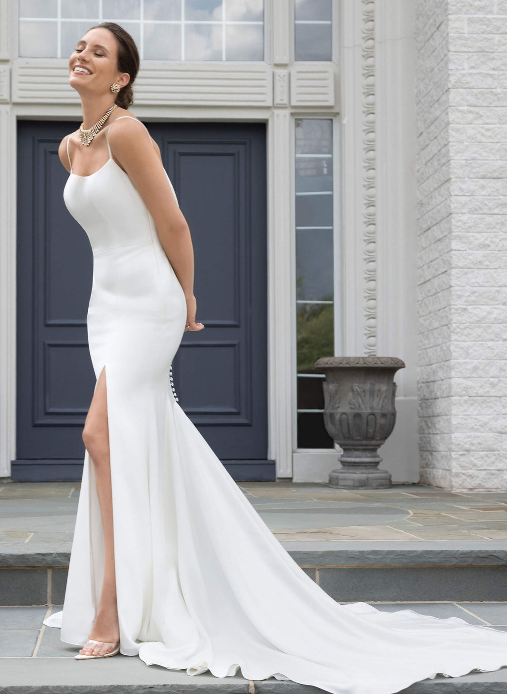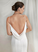 Scoop Neck Sleeveless Mermaid Fitted Court Train Satin Wedding Dresses