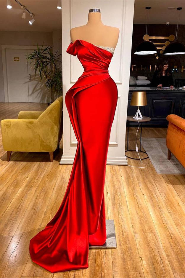 Fashion Red Mermaid Long Prom Dresses With Beadings Ruffles