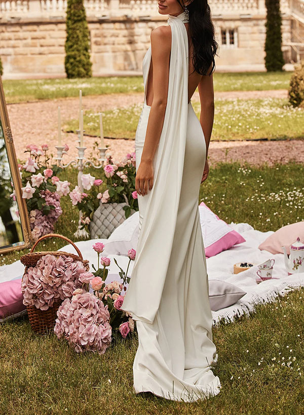 Sleeveless Sweep Train Silk Like Satin Mermaid Fitted Wedding Dresses