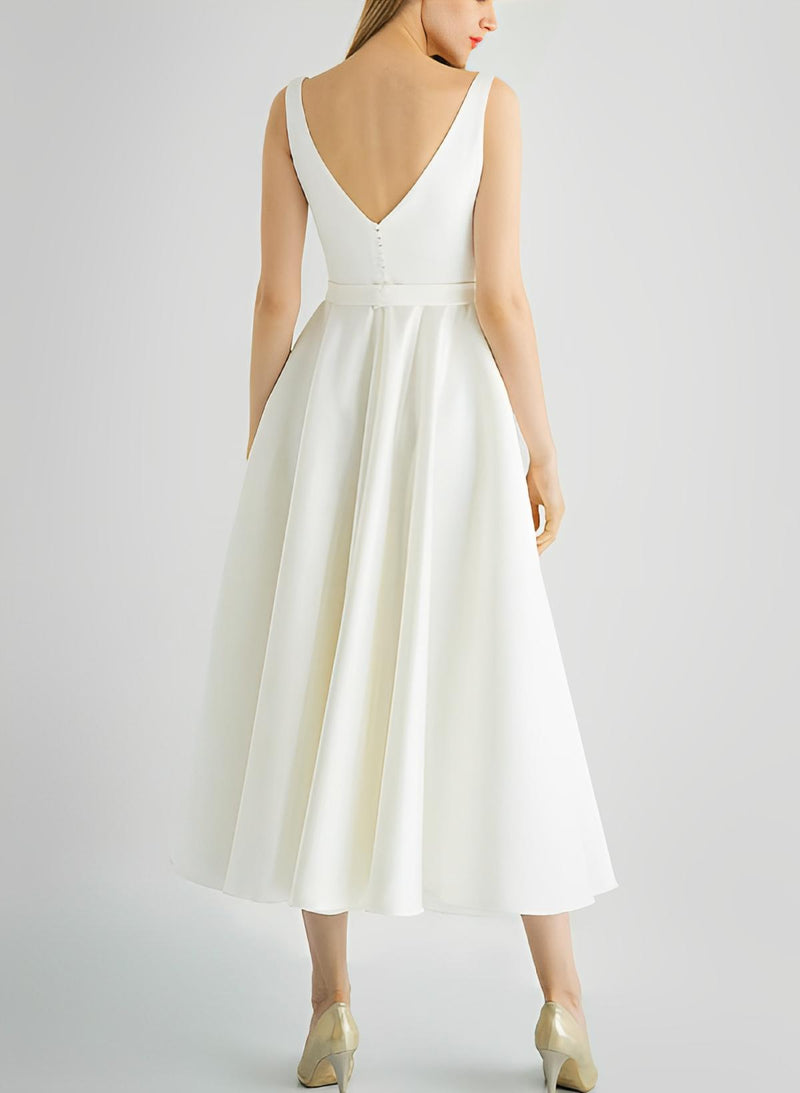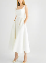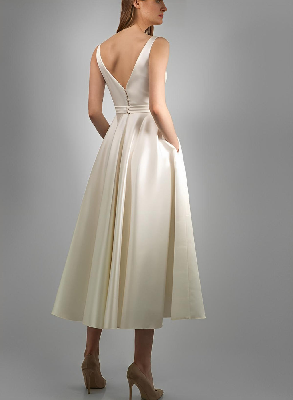 Square Neckline Sleeveless Chic A-line Satin Wedding Dress Pockets