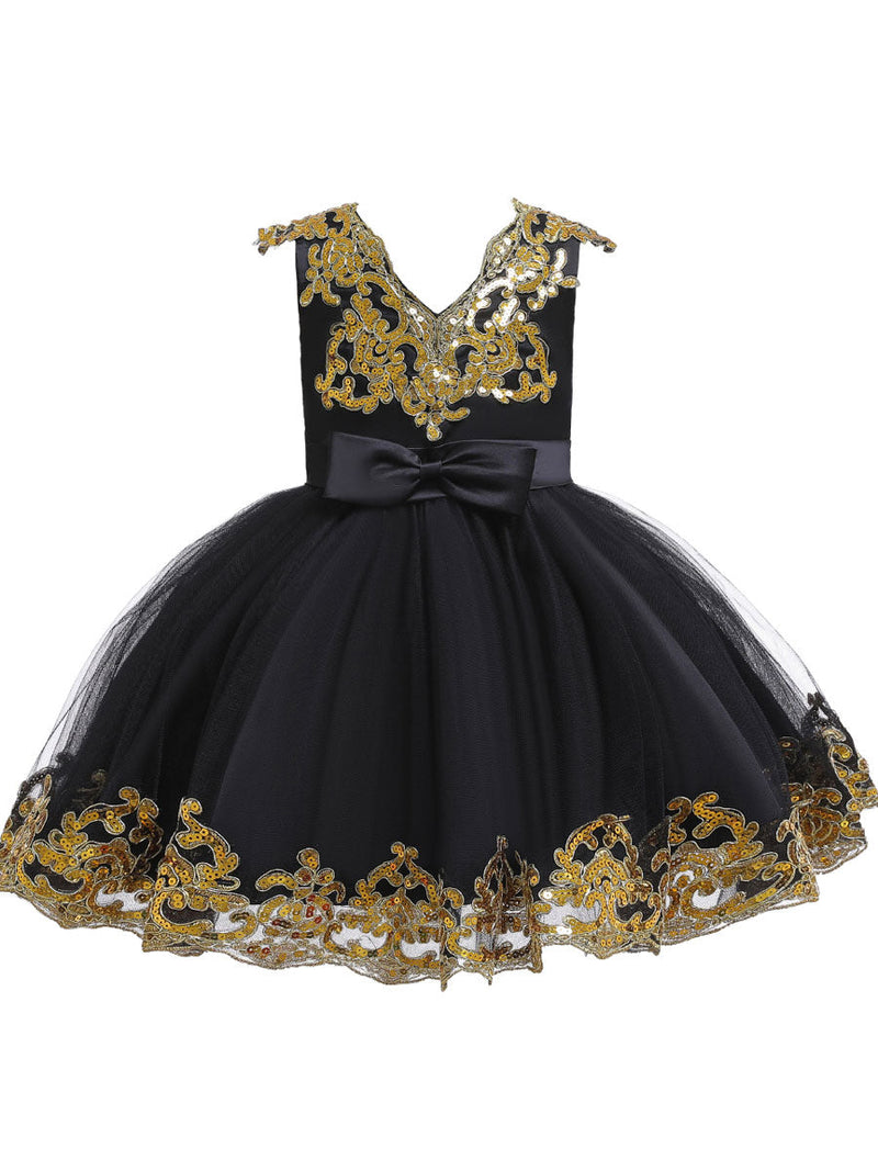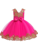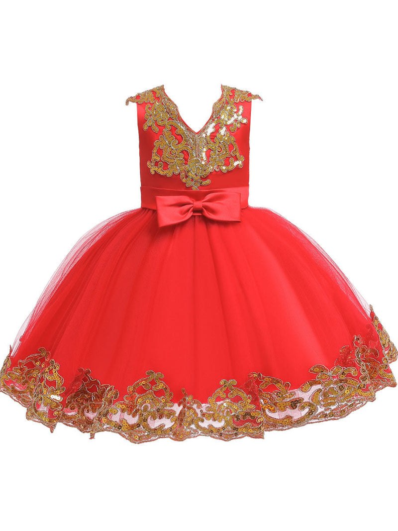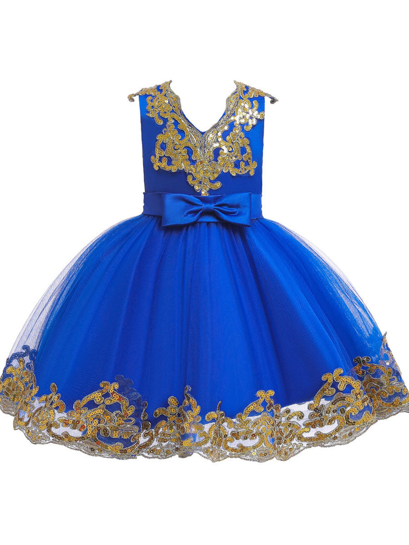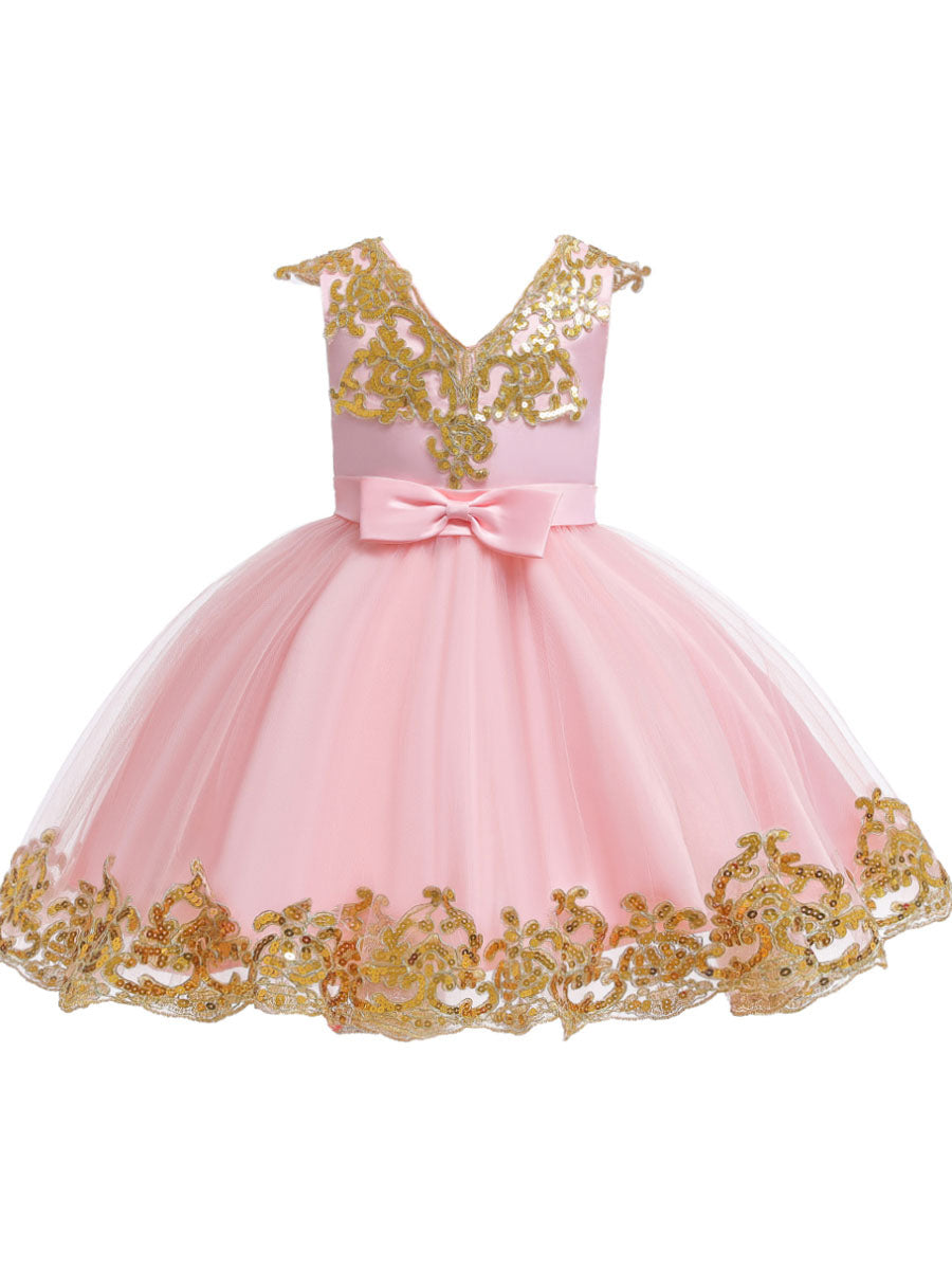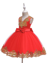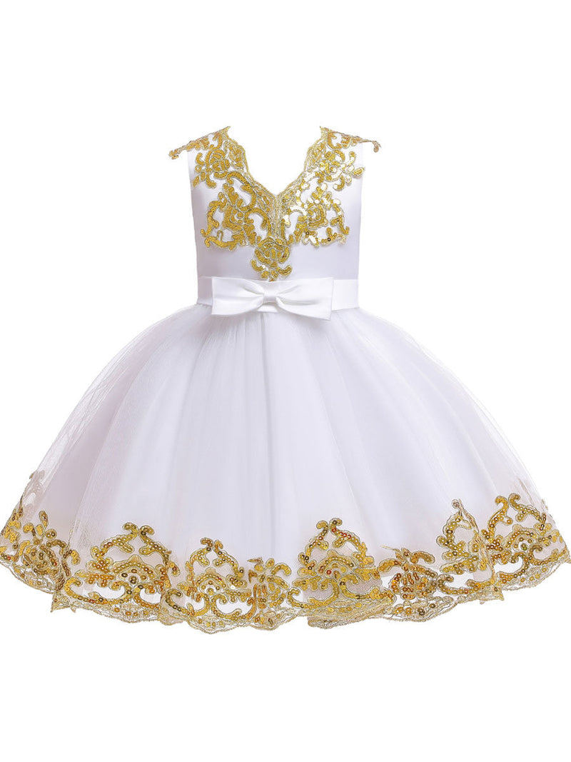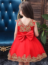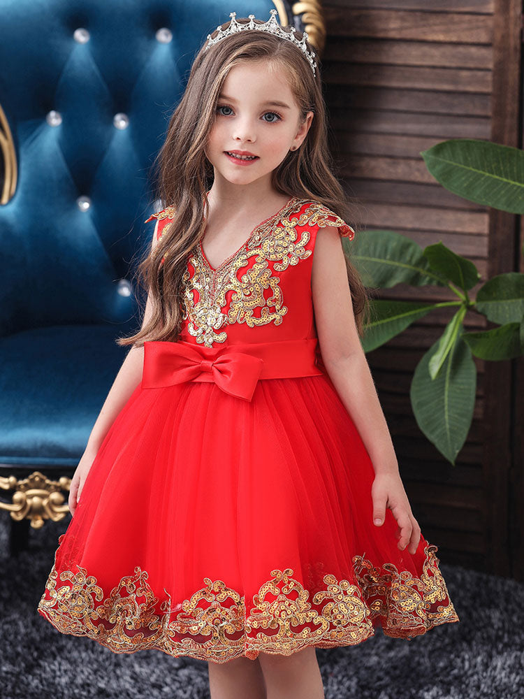 V-Neck Tulle Short Sleeves Short Princess Embroidered Kids Party Dresses