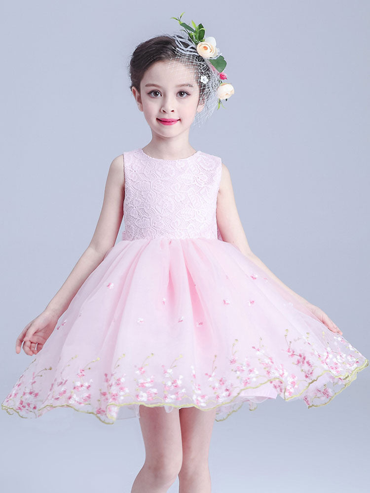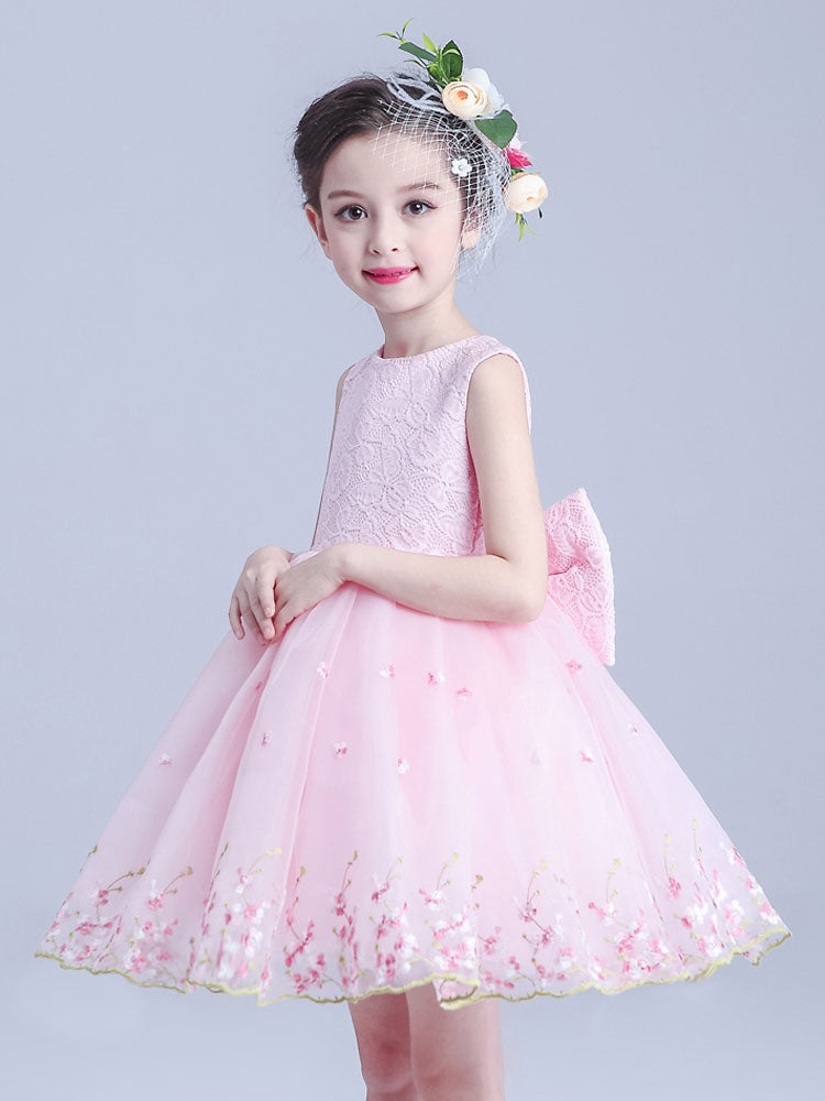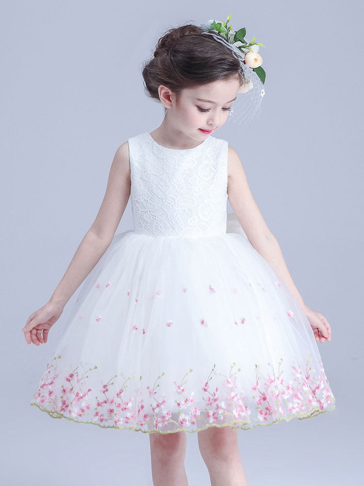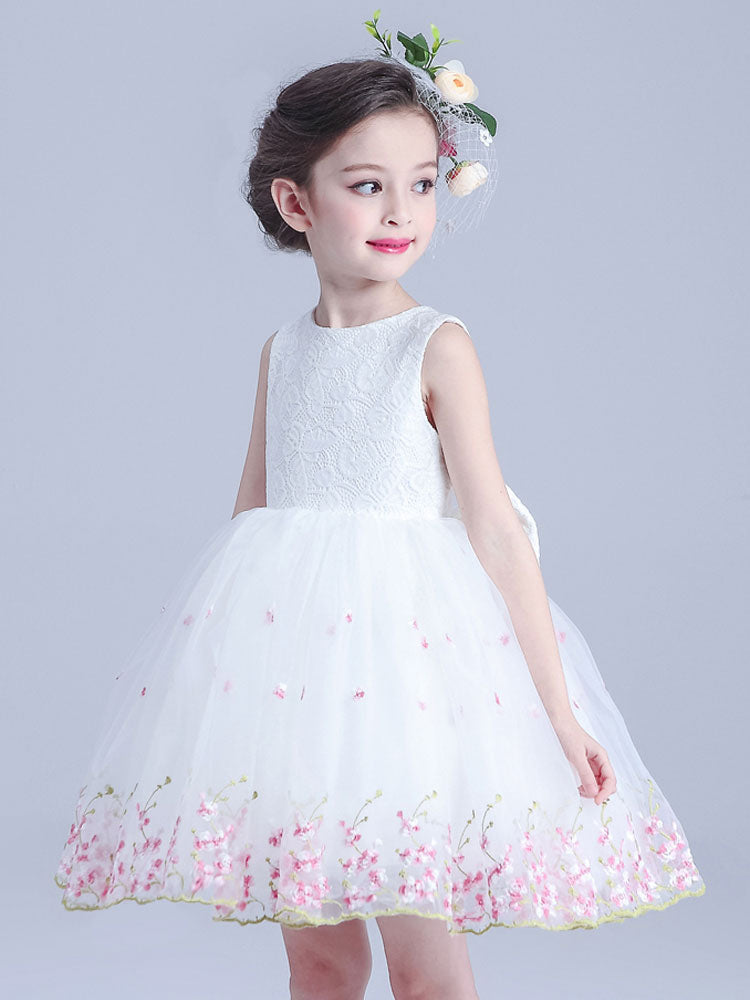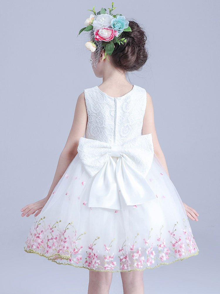 White Jewel Neck Sleeveless Bows Kids Social Party Dresses